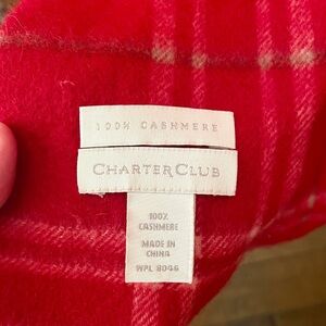 NWOT Charter Club 100% cashmere plaid scarf with fringe edge. Super soft!!