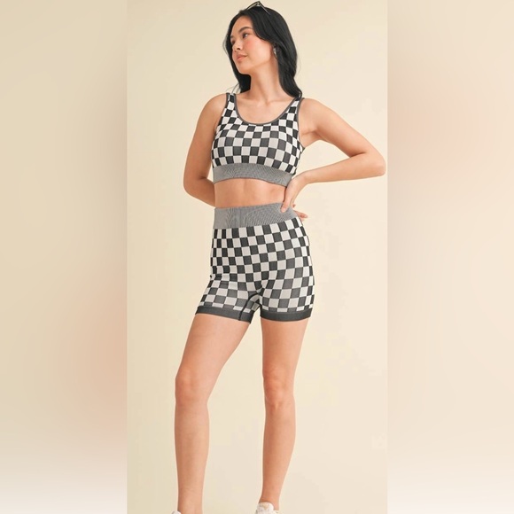 NWOT SIZE SMALL/MEDIUM Checkmate Checkered Crop Two Piece Set top is padded.