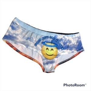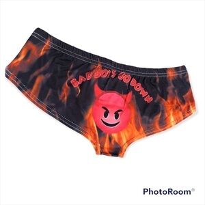 Cheeky bikini 😉! New without tag. Material is soft and stretchy, polyester. Angel and devil print novelty bikini, size S/M. No info tags/ no brand