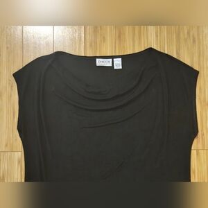 This chic black blouse from Chico's features a flattering cap sleeve design, perfect for a versatile and stylish look. Its clean lines and soft fabric make it an ideal choice for both casual and dressy occasions.