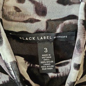 NWOT Chico's Black Label Stretch Animal Print top in black, grey, white - Size 3