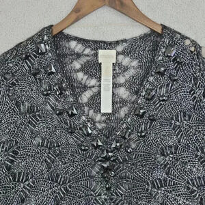 NWOT Chico's Embellished Knit Sweater Size 2 /L Black & Gray 7CT