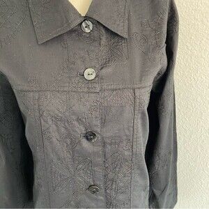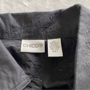 NWOT Chicos Embroidered Cotton Black Button Collar Long Sleeve Jacket Top SZ 12
