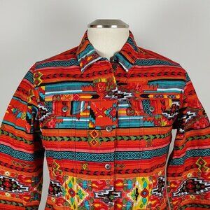 NWOT! Chico’s Y2k Southwestern Aztec Flair Cotton Lightweight Jean Jacket Medium
