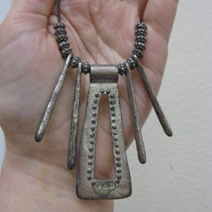 NWOT Chico's metal statement cord necklace. Cool geometric shapes are the main feature of this piece, with metal beads along the cord. The metal is kind of an antiqued silver. Brand new, never worn.