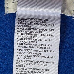 No signs of wear on this thick and soft wooly scarf from German clothier Christian Berg. 90% Wool and 10% Cashmere. No flaws. No pet hair. No odors.