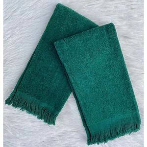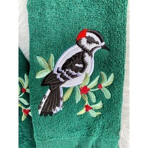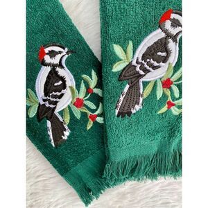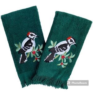 NWOT Christmas Holiday 2 PC Vintage Green Embroidered Bird Hand Towels