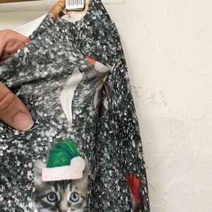🎄material folded over slightly while printing pattern so it left a white (unprinted) piece on the pants on the upper right of the back. 🎄I tried to show it stretched in the last picture.