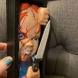 Chucky bookend. We got new a couple years ago. Fun and scary decor. He’s peeking through the books!!!! New condition. He’s kinda heavy.