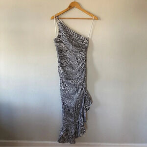 Details Zipper Closure Midi Length One shoulder Ruffle hem Detail Content and Care 100% Silk Dry Clean