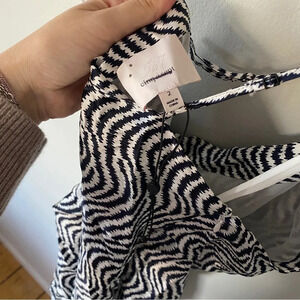 NWOT Cinq A Sept Silk Christel Ruched One Shoulder Silk Dress in White and Navy