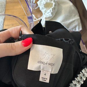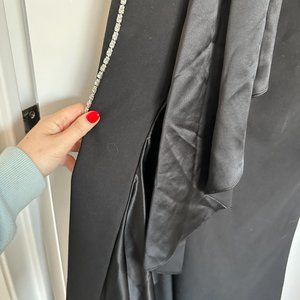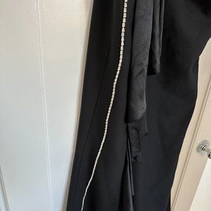 NWOT Cinq à Sept Drape Evening Long Gown Ruffled Crystal Embellished Sz 4 Black
