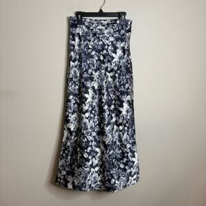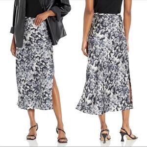 NWOT Cinq a Sept Adis Floral Print Silk Midi Skirt Black Blue Size 00