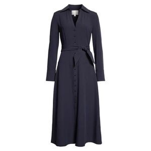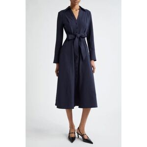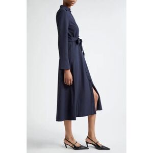 NWOT Cinq a Sept Kyla Long Sleeve Belted Midi Button Down Shirt Dress in Navy 10
