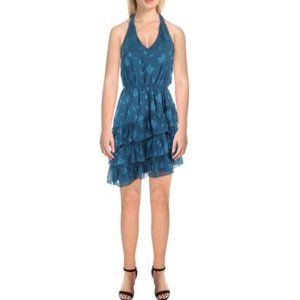 NWOT City Studio Women's Blue Tie Neck Fit Flare Dress Petite XL