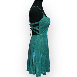 NWOT City Triangles Womens Metallic Lace Up Back Sleeveless Dress Green Size XS