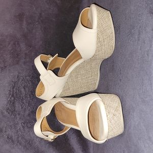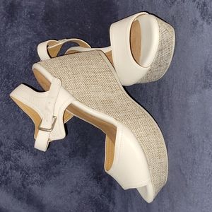 NWOT (No Box) - Beautiful, pristine never worn Clarks Artisan Nadene Lola Leather Platform Wedge Sandals. Perfect for spring and summer to pair with that cute sundress, shorts, capris or your favorite jeans! Women's size US 8M / EU 39. Available in white.
