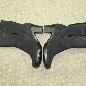 NWOT Clarks Bendables Women's Size 6W Black Leather Shearling Ankle Heel Boots