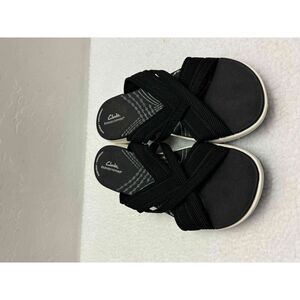 NWOT Clarks Cloudsteppers Black Textile Slip On Washable Sandals Size US 9M