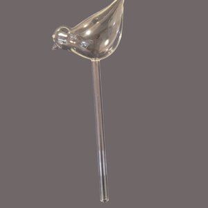 fill the bird with water and stick end into plant pot, water will drain into dirt as needed