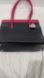 Cleo & Patek black and fuchsia tote hobo bag genuine leather made in Italy, attached key chain one sided pink and one sided rhinestone.