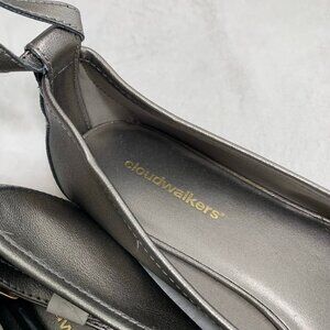 NWOT Cloudwalkers Carol Size 11W gray silver bow detail ankle strap flats shoes