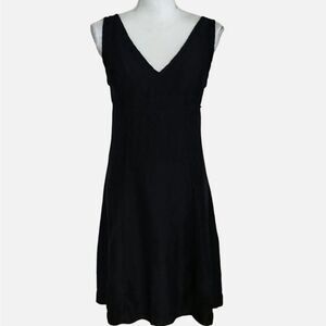 NWOT Club Monaco Linen Silk Black Sleeveless V-Neck A-Line Midi Dress 6