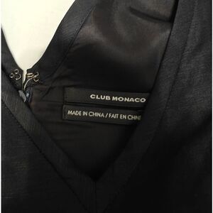 This sophisticated black dress from Club Monaco features a sleeveless design with a flattering V-neckline. Its A-line silhouette offers a chic and timeless look, perfect for cocktail parties or a night out. The midi length adds a touch of elegance to this versatile piece.