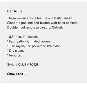 NWOT! Never wore. Subtle champagne gold tailored shorts from Club Monaco. Gorgeous color that dresses up an outfit and goes with anything.