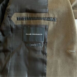 NWOT Club Monaco Wool Blazer. Tags removed but never worn. Really fantastic quality, 100% wool shell, excellent stitch detailing, two interior pockets. Perfect for work or dressing up for a special occasion. Unique color. Measurements in photos.