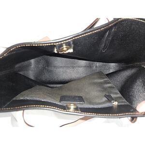 This Coach City Tote is a stylish and functional accessory for any occasion. The bag is made of durable canvas and features a snap closure, with double handles for easy carrying. The interior is lined with black canvas and has multiple pockets for storage. The bag has a large size of 13" width, 11 1/2" height, and 6 1/4" depth, making it perfect for travel, weddings, parties, and workwear. The exterior color is brown and the bag has a classic and modern design with a rose-themed pattern and the Coach logo. The bag is part of the Coach City Tote product line and is a great addition to any designer or art-loving collection.