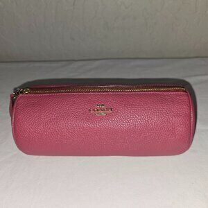 Coach Makeup Brush Case Bag Pouch Holder Magenta Pebble Grain Leather