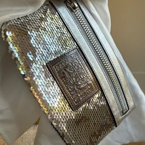 Coach Poppy silver sequin wristlet NWOT - never been used.