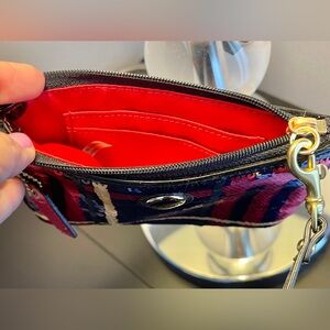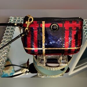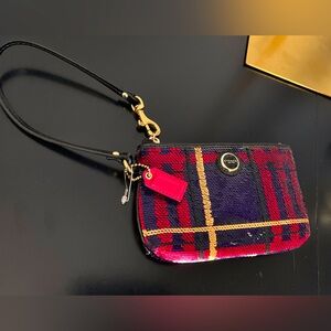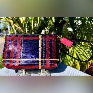 NWOT Coach Sequin Wristlet Tartan Plaid Leather trim