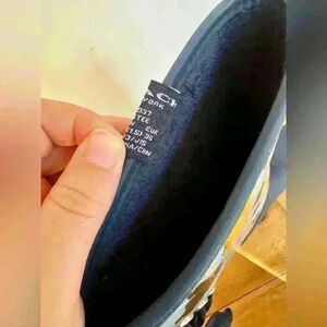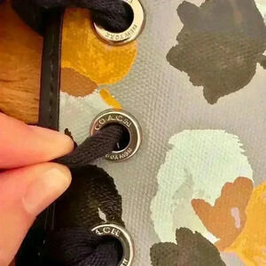 Coach Tristee classic flower print lace up corset logo rain boots in a women’s US size 6. These are new but some of the felt on the very bottom has rubbed off a little but doesn’t impact the use or integrity of the boots (see pictures). They have a soft furry interior lining and are beautiful (I wish that they were my size!).