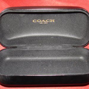New, by COACH a clam shell (fits larger framed glasses) black leather eye/sunglass case. COACH embossed on enterior top, and also embossed on inner lid. Great to protect your investment!