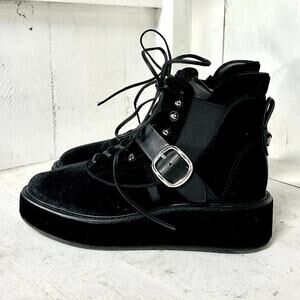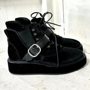 Coach x Tabitha Simmons Velvet Wedge Heel Chelsea Hiker Ankle Boots Black Women 8.5