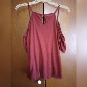 NWOT Coco Jaimeson Sm Hem Detail Lace Inset Cold Shoulder Short Sleeve T…