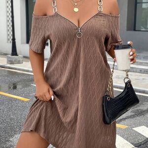NWOT Cold Shoulder O-ring Detail Zip Front Dress