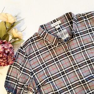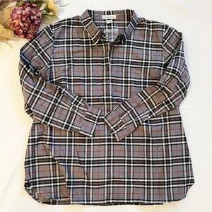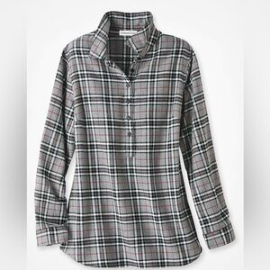 NWOT Coldwater Creek Alpine Celebration Plaid Flannel Gray Tunic Top Size PXL