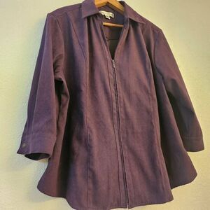 NWOT Coldwater Creek V-neck Zipup Soft Vibrant Purple Top-Shirt-Jacket Cropped t