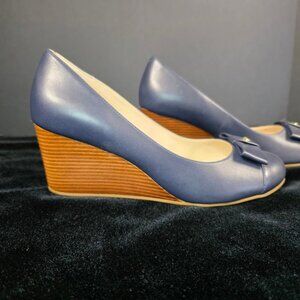 NWOT Cole Haan Adair Blue Leather Wedge Pumps 7.5