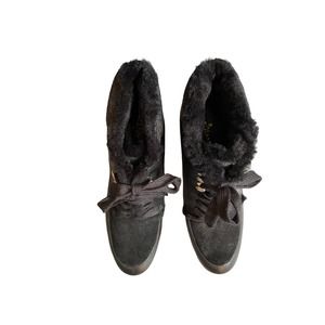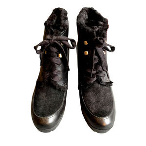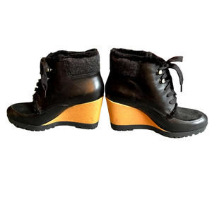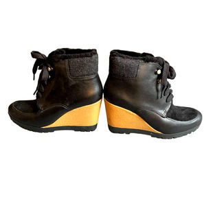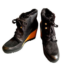 NWOT Cole Haan Womens Real Sheep Fur Wedge Ankle Boots Size 7 Black