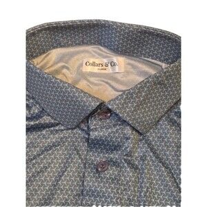 NWOT Collars & Co Mens XL Dress Collar Polo Shirt Slate Blue Geo Print Golf