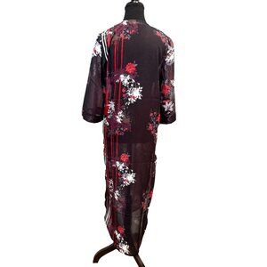 NWOT Colleen Lopez Floral Striped Robe Kimono Open Front Long Size XS