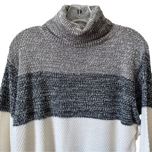 NWOT Color Block Cable Knit Turtle Neck Sweater Black/Grey/White size Small