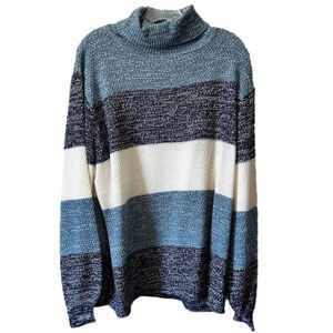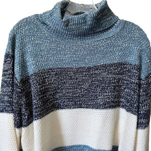 NWOT Color Block Cable Knit Turtle Neck Sweater Blue/White size Large