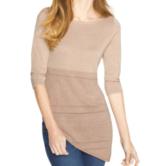 NWOT Knitted with a touch of shimmer, this 3/4 sleeve pullover is an elegant way to embrace sweater weather.