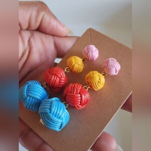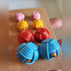 NWOT Colorful Woven Wrapped Dangling Ball Drop Earrings