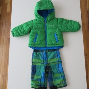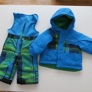 - Bib with warm soft fleece top and water-proof fabric bottom